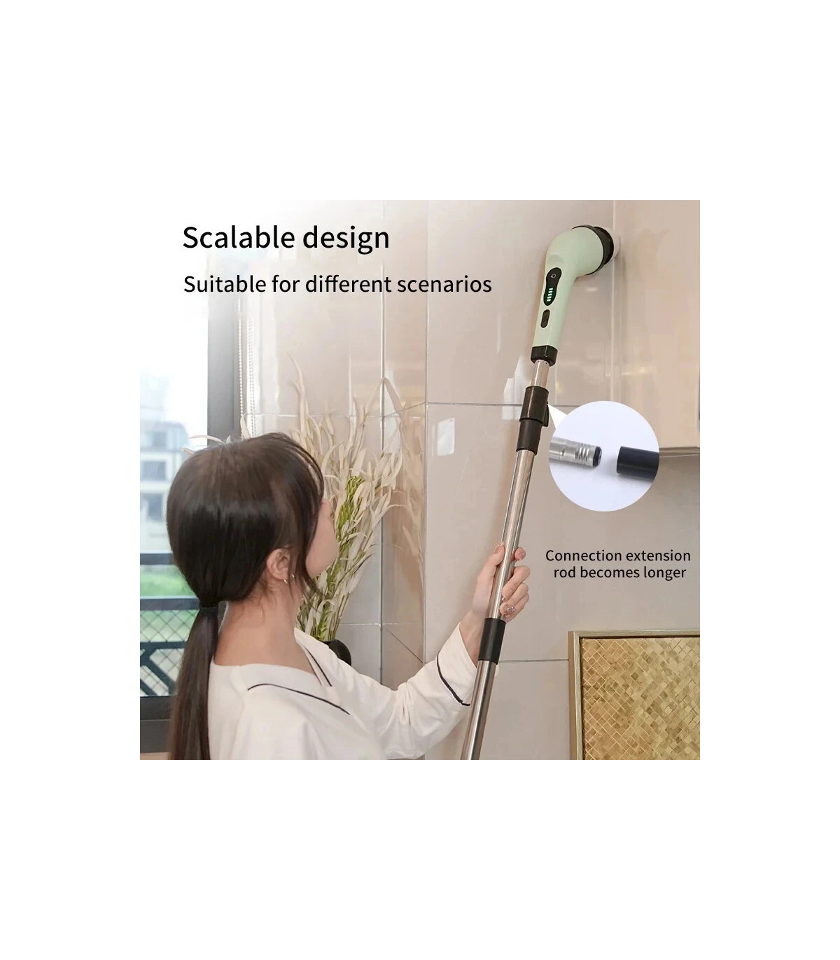 [White] Brosse de nettoyage électrique 9 en 1, épurateur de nettoyage à rotation électrique, outils de nettoyage électriques, Gadgets de nettoyage pour salon, cuisine et salle de bains Ce produit correspond uniquement à la première image. Caractéristiques : 1.Avec affichage numérique : affichage numérique LED, faites toujours attention au niveau de la batterie. 2.Puissant : moteur magnétique puissant, couple élevé, non brûlant, haute puissance. 3.[White] Brosse de nettoyage électrique 9 en 1, épurateur de nettoyage à rotation électrique, outils de nettoyage électriques, Gadgets de nettoyage pour salon, cuisine et salle de bains