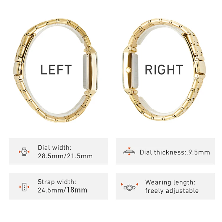 • Or doré de luxe :Avec son or doré de luxe, cette montre apporte une touche d'élégance et de sophistication à votre style. Elle est non seulement fonctionnelle, mais aussi un accessoire de mode qui ajoute du charme à votre tenue.