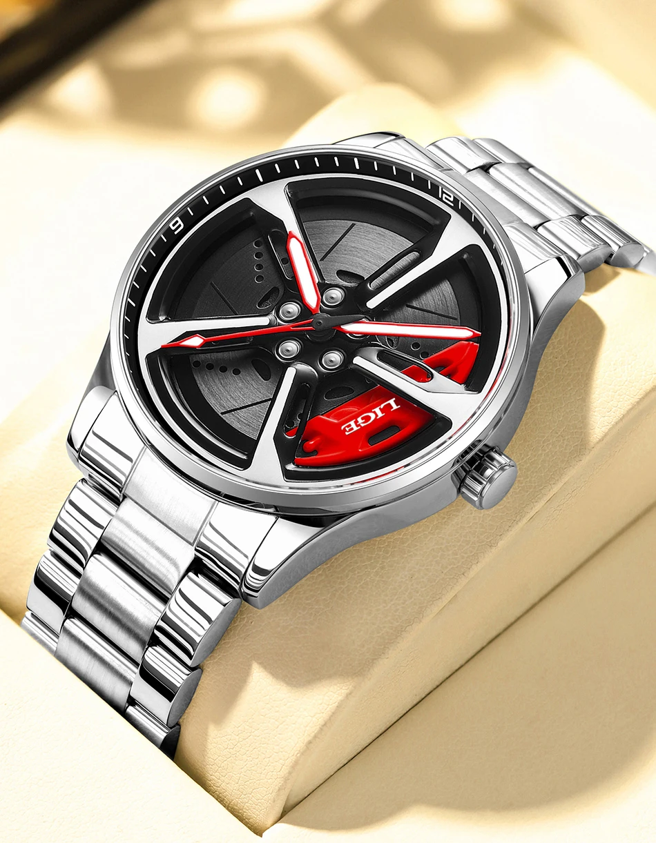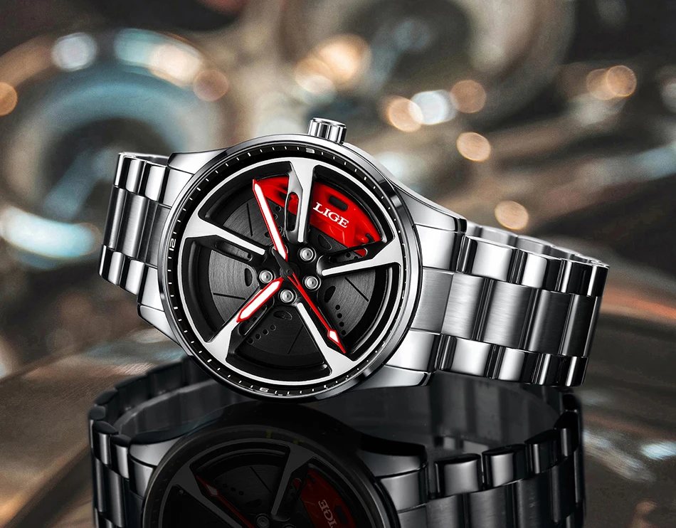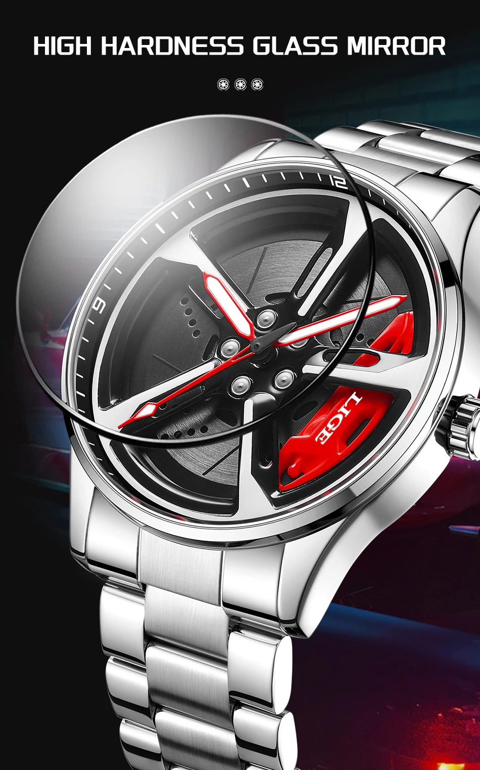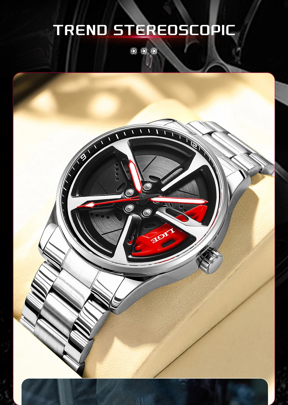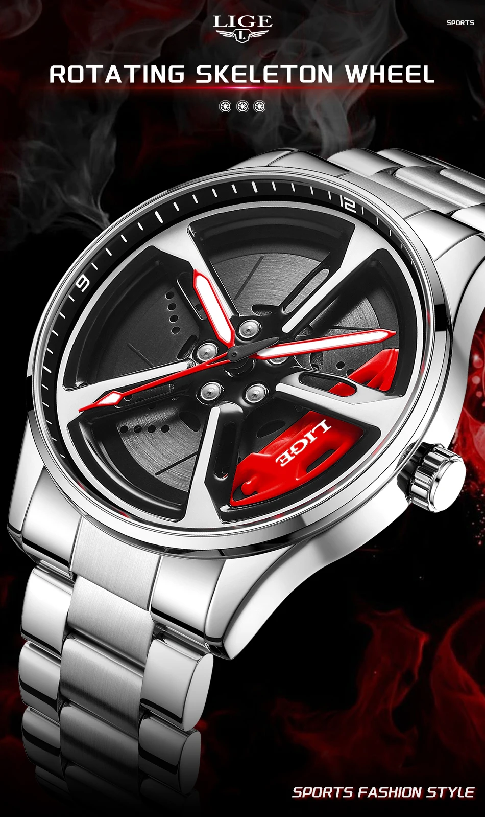 [Black red] LIGE nouveau sport hommes voiture roue montres affaires étanche montre à Quartz pour hommes en acier inoxydable moyeu roue cadran conception montre hommes Ce produit correspond uniquement à la première image.[Black red] LIGE nouveau sport hommes voiture roue montres affaires étanche montre à Quartz pour hommes en acier inoxydable moyeu roue cadran conception montre hommes
