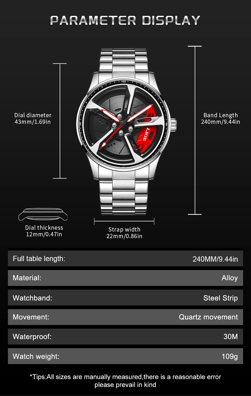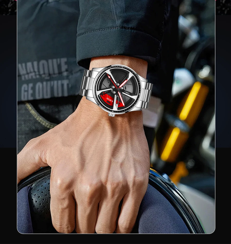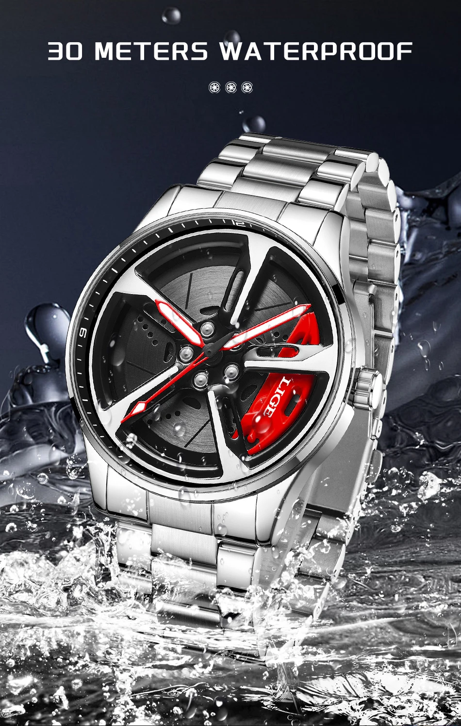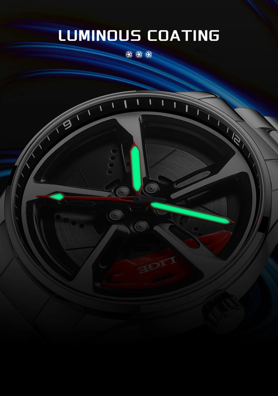 [Black red] LIGE nouveau sport hommes voiture roue montres affaires étanche montre à Quartz pour hommes en acier inoxydable moyeu roue cadran conception montre hommes Ce produit correspond uniquement à la première image.[Black red] LIGE nouveau sport hommes voiture roue montres affaires étanche montre à Quartz pour hommes en acier inoxydable moyeu roue cadran conception montre hommes